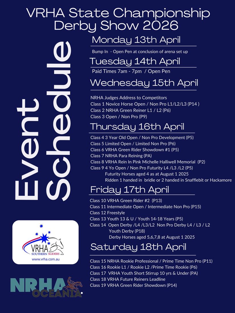 Class Draws posted on the website are subject to changes due to late entries and scratchings